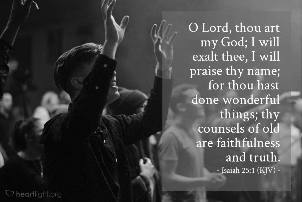 “O LORD, You are my God; I will exalt You, I will give thanks to Your name; For you have worked wonders, plans formed long ago, with perfect faithfulness.”