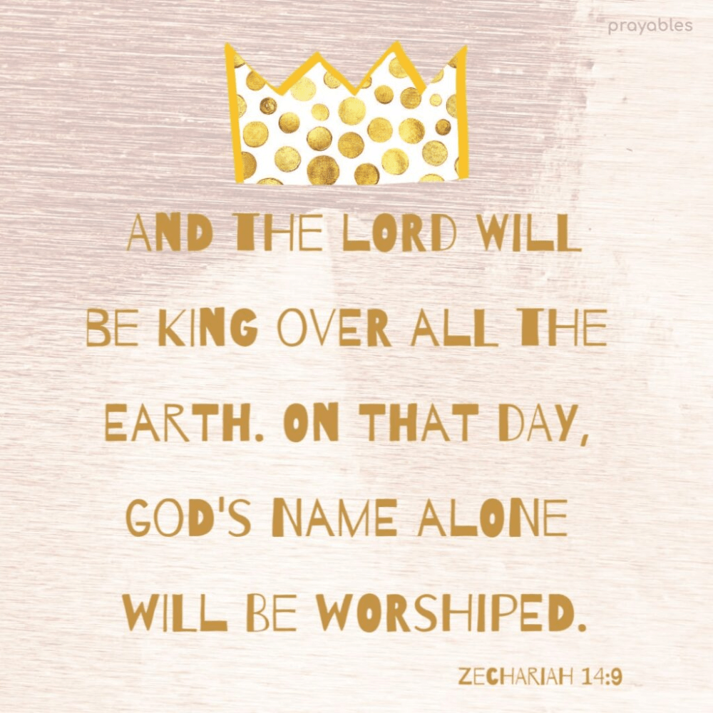 Let’s read our key verse 9 again. “The Lord will be king over the whole earth. On that day there will be one Lord, and his name the only name.”