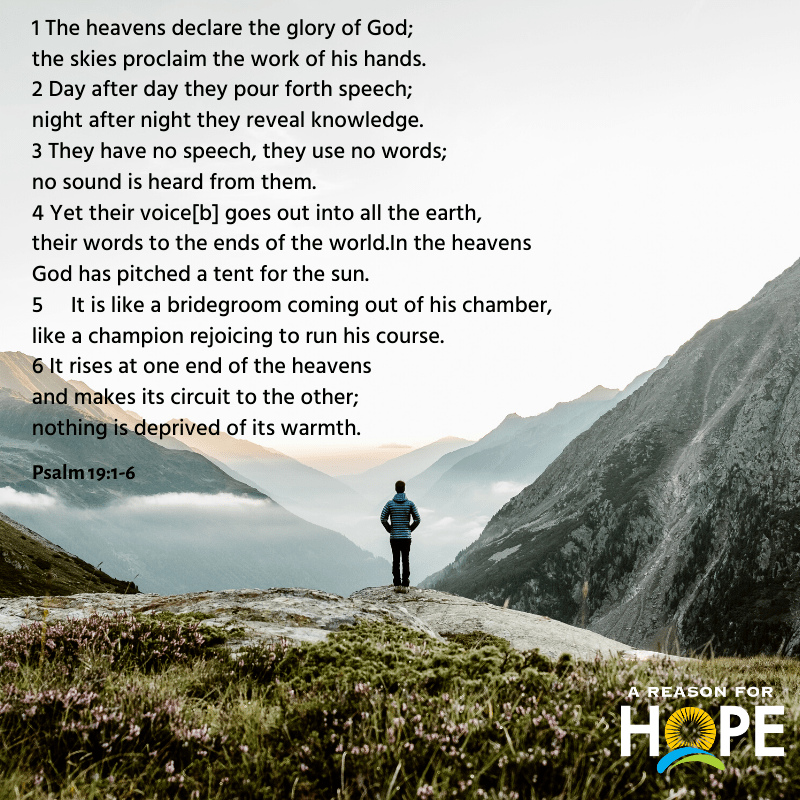 Psalm 19:1 The heavens declare the glory of God, and the sky above proclaims his handiwork.
