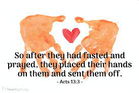 When the church had prayed for them and laid hands on them, they release them to the work of ministry and mission.