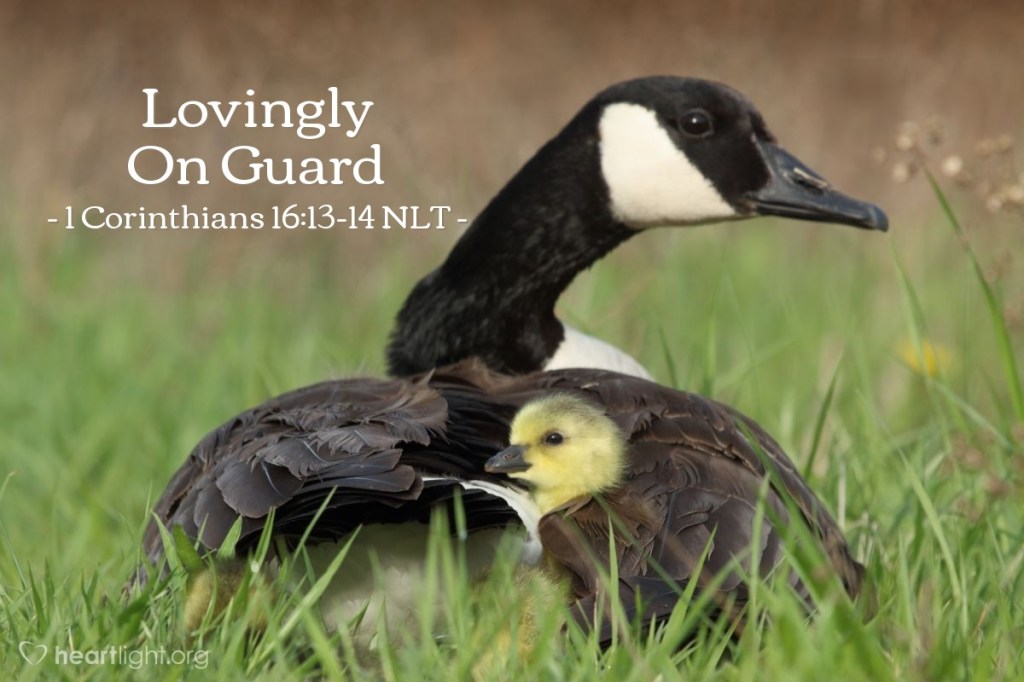 “Keep your eyes open,” “Be on the alert, stand firm in the faith, act like men, be strong,” he urges, “and always let EVERYTHING that you do be done in love.”