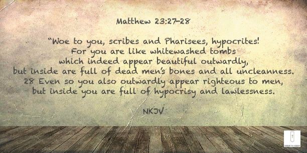 “Woe to you, scribes and Pharisees, hypocrites! For you are like whitewashed tombs, which outwardly appear beautiful, but within are full of dead people’s bones and all uncleanness.” Matthew 23:27