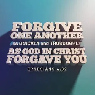 31-32 Make a clean break with all cutting, backbiting, profane talk. Be gentle with one another, sensitive. Forgive one another as quickly and thoroughly as God in Christ forgave you.