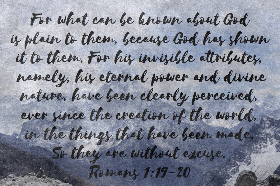 “For what may be known about God is plain to them, because God has made it plain to them. For since the creation of the world God’s invisible qualities – his eternal power and divine nature – have been clearly seen, being understood from what has been made, so that people are without excuse.”