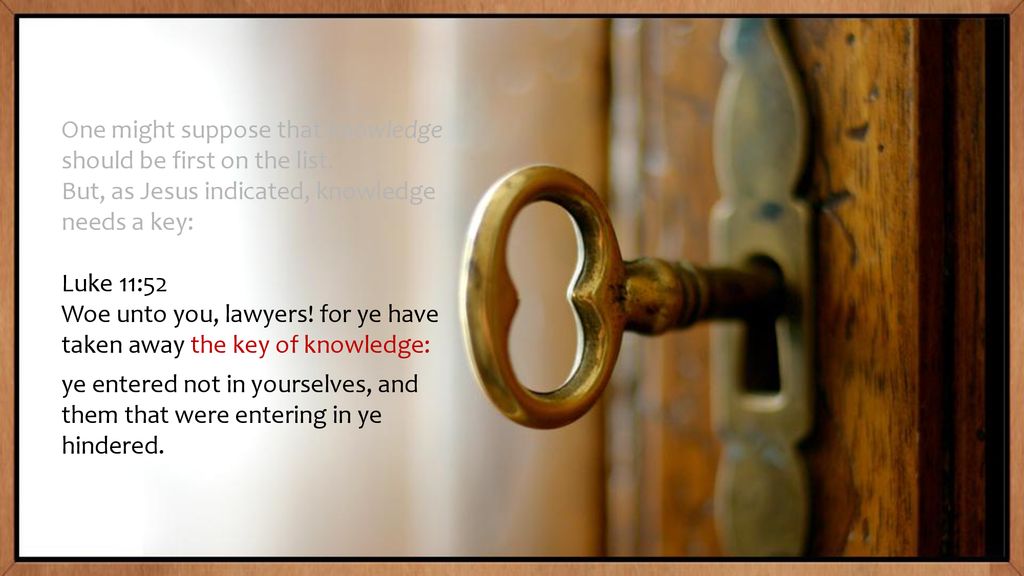 52 “Woe to you lawyers! For you have taken away the key of knowledge. You did not enter in yourselves, and those who were entering in you hindered.”