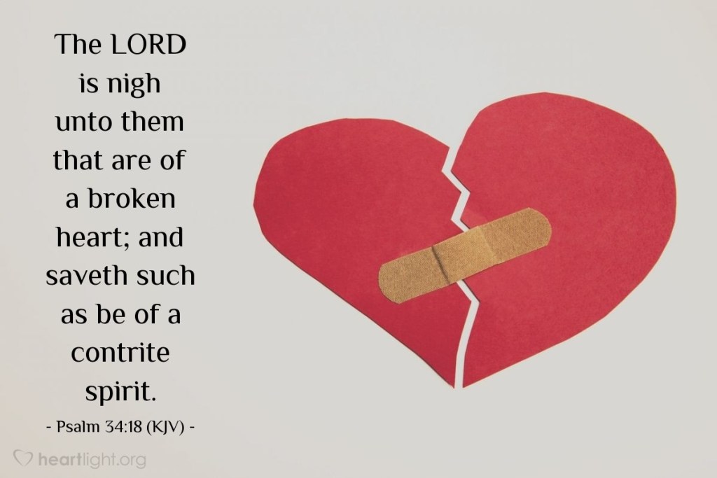 18 The Lord is close to those whose hearts are breaking; he rescues those who are humbly sorry for their sins.