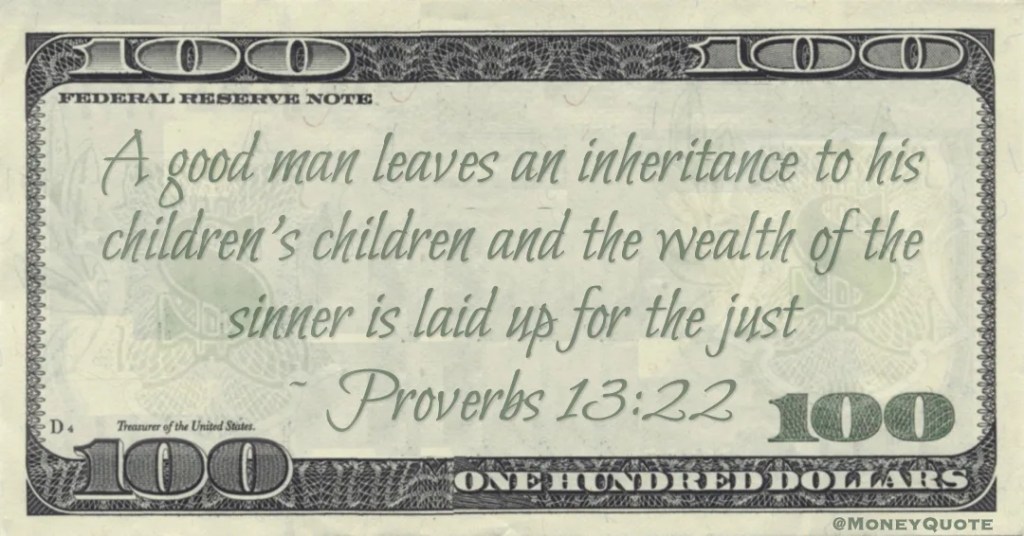 Proverbs 13:22 “A good person leaves an inheritance for their children’s children.”