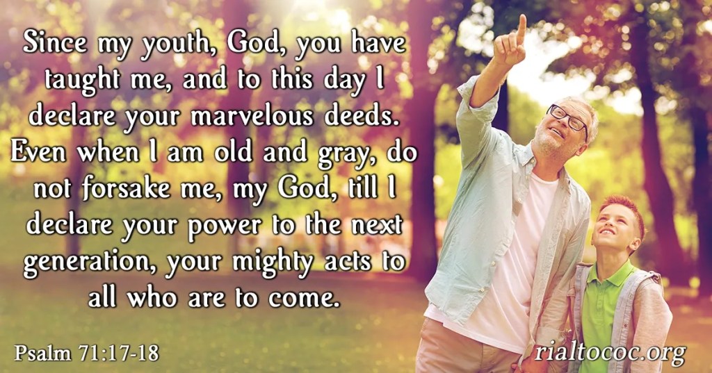 The Psalmist reasons that a person of maturity who has known and benefited, blessed from God’s grace and mercy for a long time is the person best prepared to declare God’s power to the next generation.