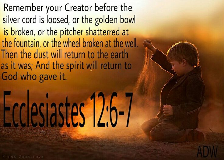 6 Earnestly remember your Creator before the silver cord [of life] is broken, or the golden bowl is crushed, or the pitcher at the fountain is shattered and the wheel at the cistern is crushed; 7 then the dust [out of which God made man’s body] will return to the earth as it was, and the spirit will return to God who gave it.