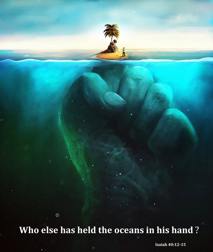 These words came to my mind, Who has measured the waters in the hollow of his hand?
