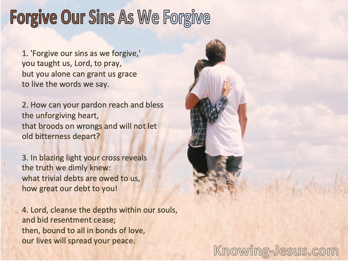 Acknowledging that we need forgiveness is not easy. But look at the last part of this request: “. . . as we also have forgiven our debtors.” I sometimes wonder,