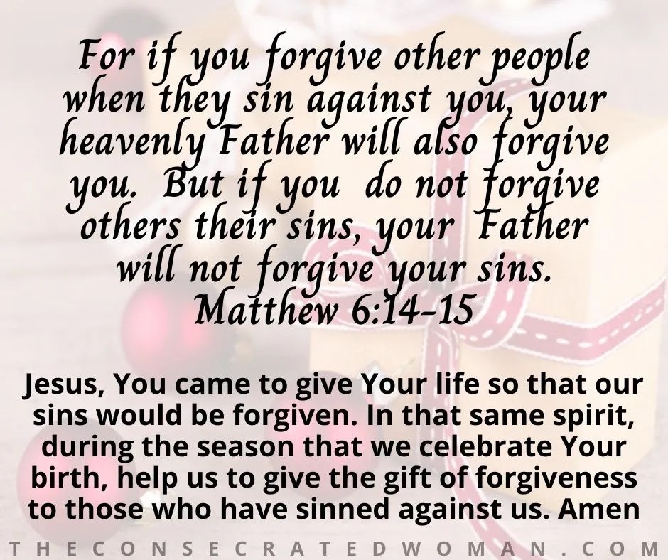 14 For if you forgive [a]others their trespasses [their reckless and willful sins], your heavenly Father will also forgive you. 15 But if you do not forgive others [nurturing your hurt and anger with the result that it interferes with your relationship with God], then your Father will not forgive your trespasses.