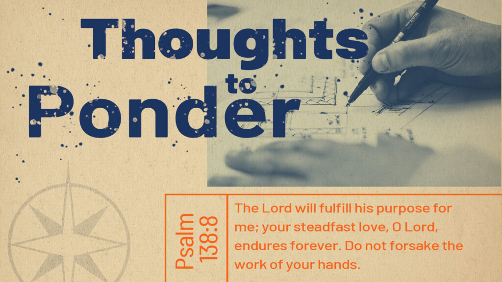 “The Lord will fulfill his purpose for me; your steadfast love, O Lord, endures forever. Do not forsake the work of your hands.” ESV
