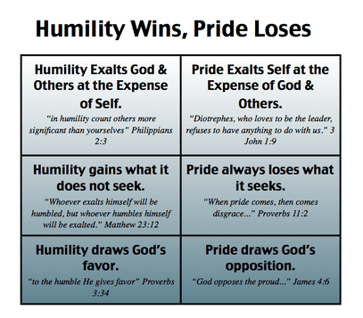 11 ·Whoever is your servant is the greatest among you [L The greatest among you will be your servant]. 12 Whoever ·makes himself great [lifts up/exalts himself] will be made humble. Whoever makes himself humble will be ·made great [exalted; lifted up].(Matthew 23:11-12).