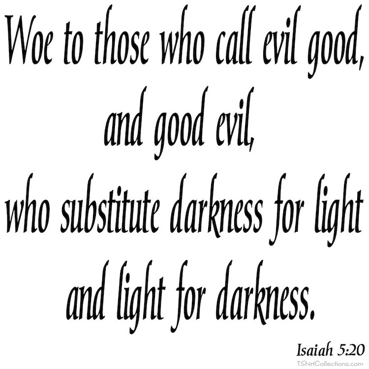 “Woe to those who call evil good, and good evil!” (Isaiah 5:20).