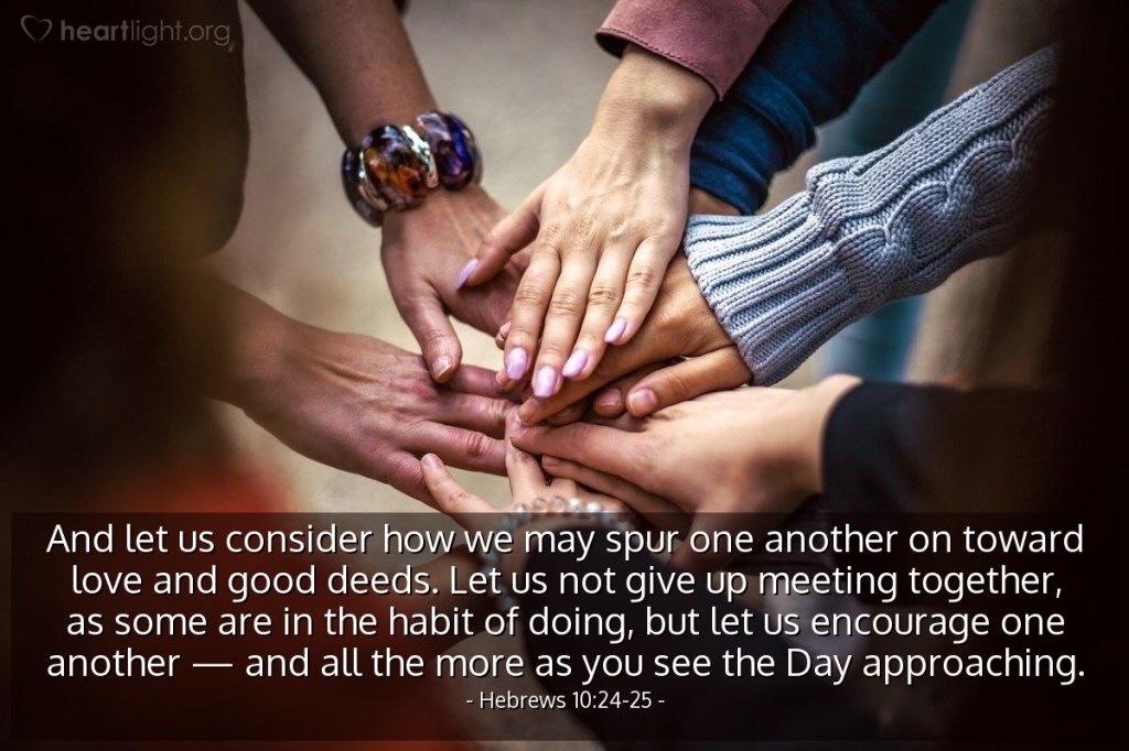 19 Therefore, brothers and sisters, since we have confidence to enter the holy place by the blood of Jesus, 20 by a new and living way which He inaugurated for us through the veil, that is, through His flesh, 21 and since we have a great priest over the house of God, 22 let’s approach God with a [a]sincere heart in full assurance of faith, having our hearts sprinkled clean from an evil conscience and our bodies washed with pure water. 23 Let’s hold firmly to the confession of our hope without wavering, for He who promised is faithful; 24 and let’s consider how to [b]encourage one another in love and good deeds, 25 not abandoning our own meeting together, as is the habit of some people, but encouraging one another; and all the more as you see the day drawing near.