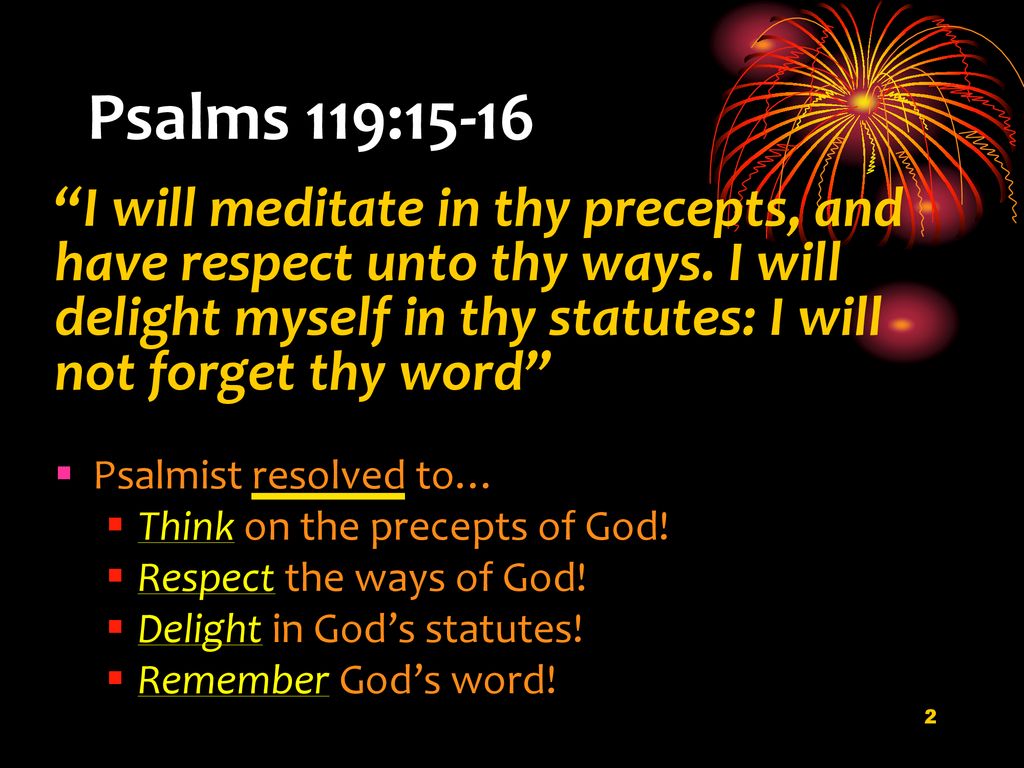 Lastly, the Psalmist declares that he will not forget God’s word. Forget can also be translated as “mislay” (as in misplacing your car keys) or “obliviousness due to lack of attention.”