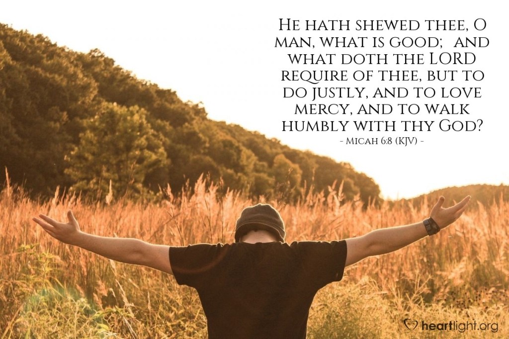 And to walk humbly with your God [setting aside any overblown sense of importance or self-righteousness]?