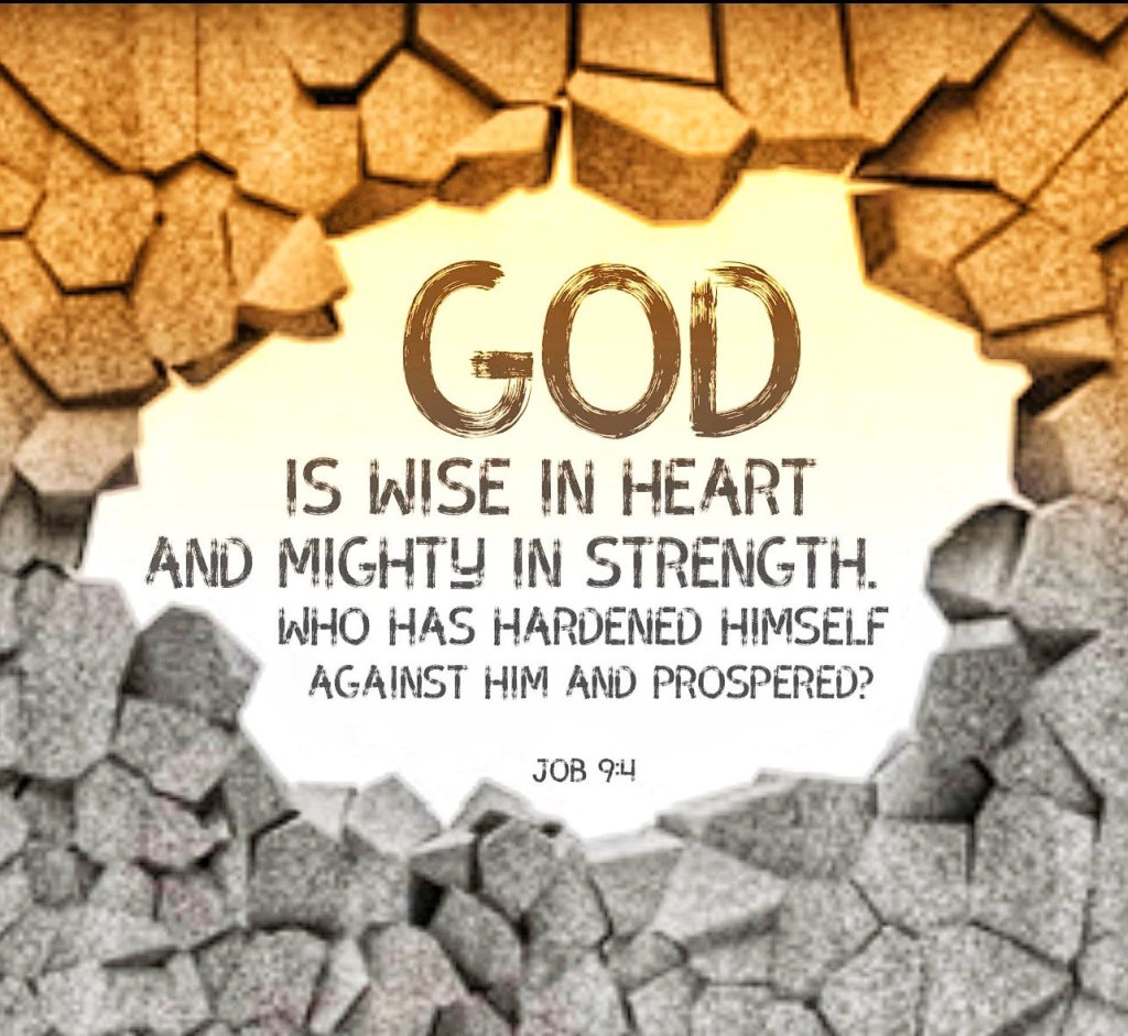 2 “Yes, I know it is true. But how can a mortal man be right before God? 3 “If one should want to contend or dispute with Him, He could not answer Him once in a thousand times. 4 “God is wise in heart and mighty in strength; Who has [ever] defied or challenged Him and remained unharmed? 5 “It is God who removes the mountains, and they do not know it, When He overturns them in His anger; 6 Who shakes the earth out of its place, And its pillars tremble; 7 Who commands the sun, and it does not shine; Who seals up the stars [from view]; 8 Who alone stretches out the heavens And tramples down the [a]waves of the sea; 9 Who made [the constellations] the Bear, Orion, and the Pleiades, And the [vast starry] spaces of the south; 10 Who does great things, [beyond understanding,] unfathomable, Yes, marvelous and wondrous things without number. 11 “Behold, He passes by me, and I do not see Him; He moves past me, but I do not perceive Him. 12 “Behold, He snatches away; who can restrain or turn Him back? Who will say to Him, ‘What are You doing?’