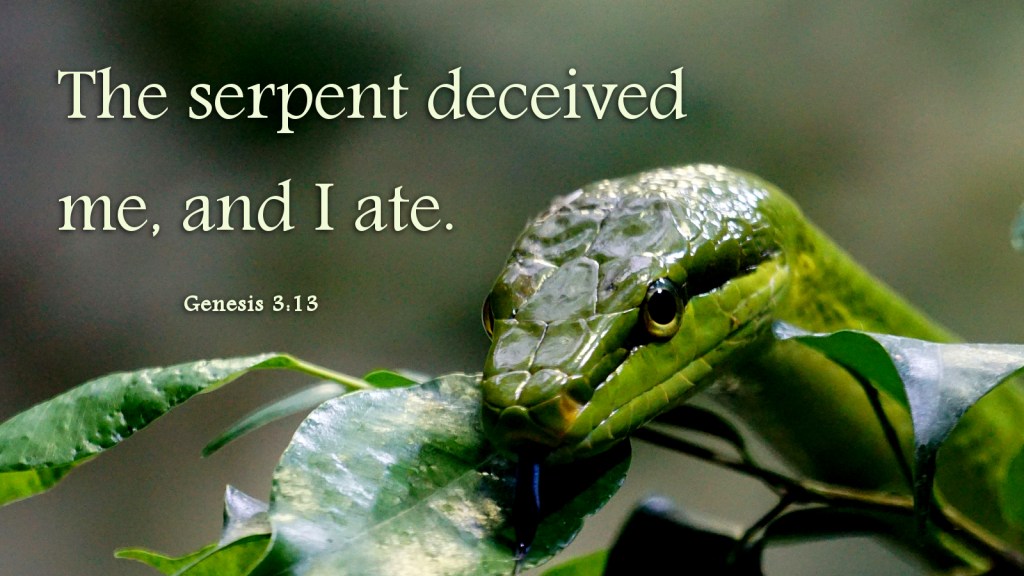 3 Now the serpent was more crafty than any wild animal which Adonai, God, had made. He said to the woman, “Did God really say, ‘You are not to eat from any tree in the garden’?” 2 The woman answered the serpent, “We may eat from the fruit of the trees of the garden, 3 but about the fruit of the tree in the middle of the garden God said, ‘You are neither to eat from it nor touch it, or you will die.’” 4 The serpent said to the woman, “It is not true that you will surely die; 5 because God knows that on the day you eat from it, your eyes will be opened, and you will be like God, knowing good and evil.” 6 When the woman saw that the tree was good for food, that it had a pleasing appearance and that the tree was desirable for making one wise, she took some of its fruit and ate. She also gave some to her husband, who was with her; and he ate. 7 Then the eyes of both of them were opened, and they realized that they were naked. So they sewed fig leaves together to make themselves loincloths.