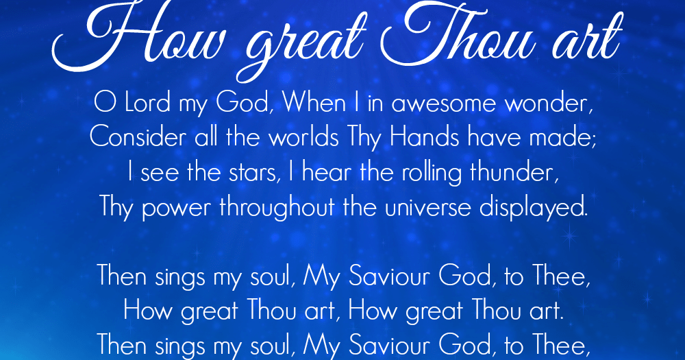 The hymn originated as a poem written by Swedish pastor Carl Boberg in 1885. Boberg was inspired to write the poem after experiencing a wondrous sight in nature: a sudden thunderstorm followed by a clear, beautiful view over a bay.