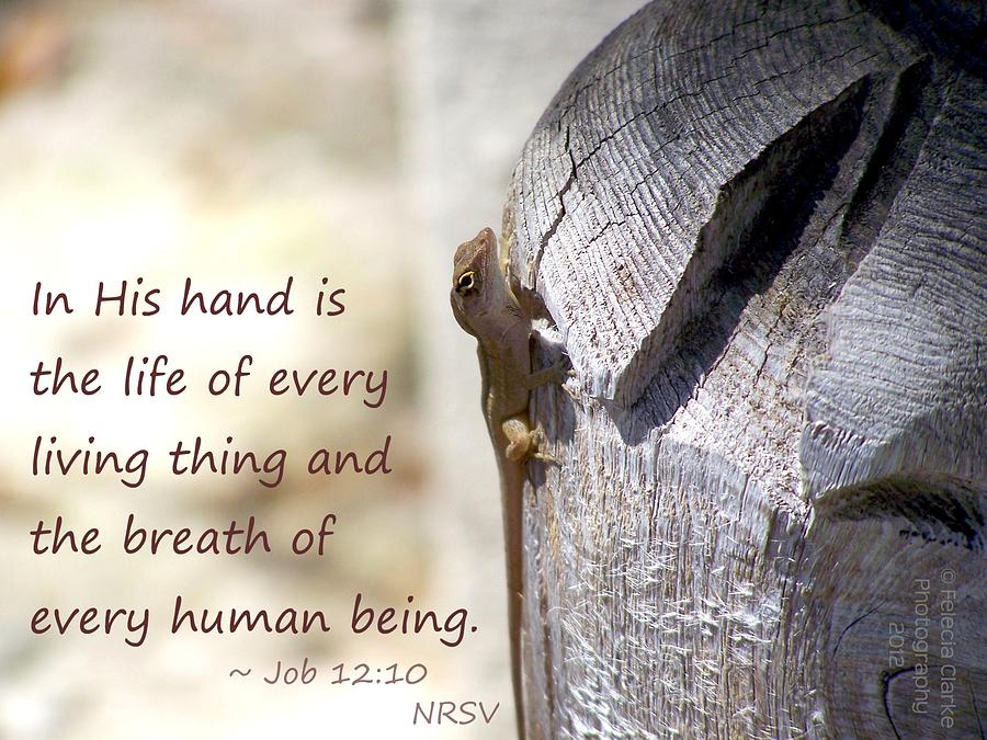 7 “But ask the animals — they will teach you — and the birds in the air — they will tell you; 8 or speak to the earth — it will teach you — and the fish in the sea will inform you: 9 every one of them knows that the hand of Adonai has done this! 10 In his hand is the life of every living thing and the spirit of every human being. 11 Shouldn’t the ear test words, just as the palate tastes food? 12 Is wisdom [only] with aged men? discernment [only] with long life?