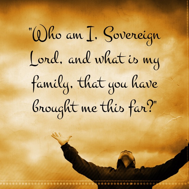 David approaches the Lord and has so much to say. First, David asks, “Who am I, O Lord God, and what is my house, that you have brought me thus far?”